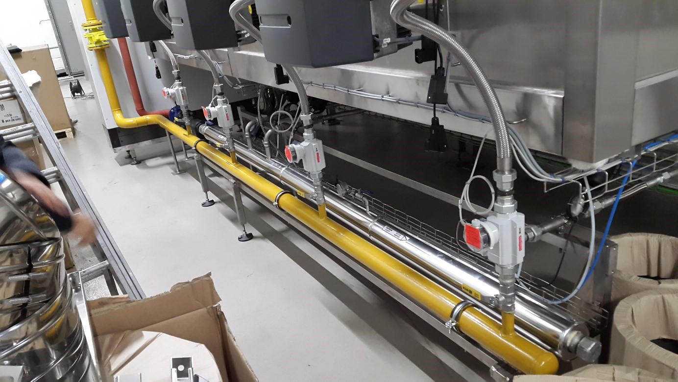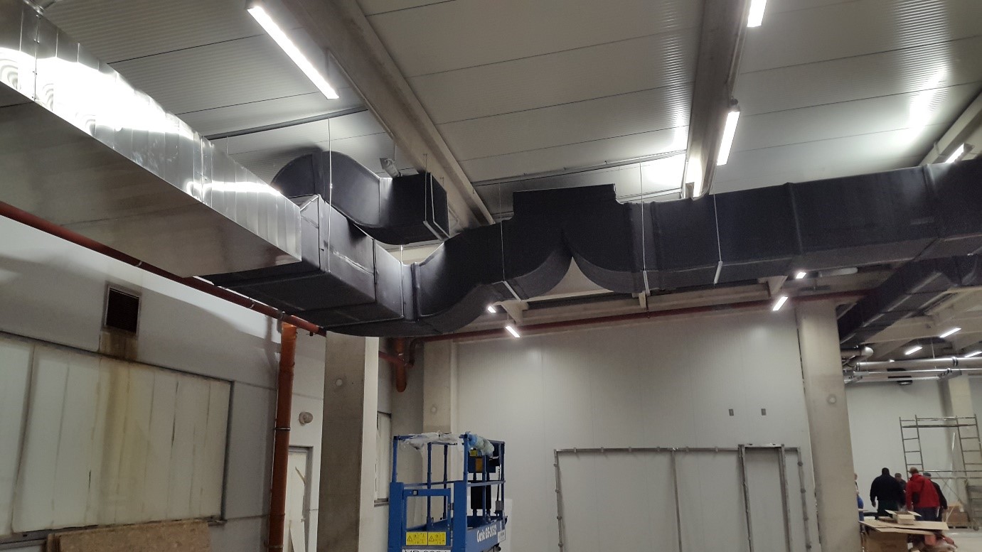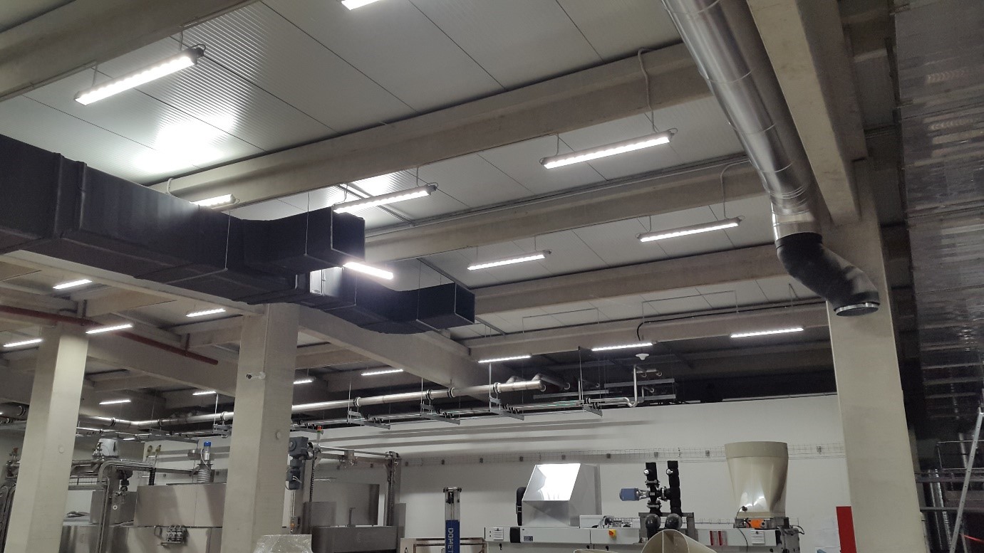 Dieses Projekt beinhaltet die Klimatisierung der neuen automatischen Produktionslinie für die Herstellung von Backwaren sowie die notwendigen Gas-, Dampf-, Druckluft- und Sauglüftungsanschlüsse entsprechend den technologischen Anforderungen.